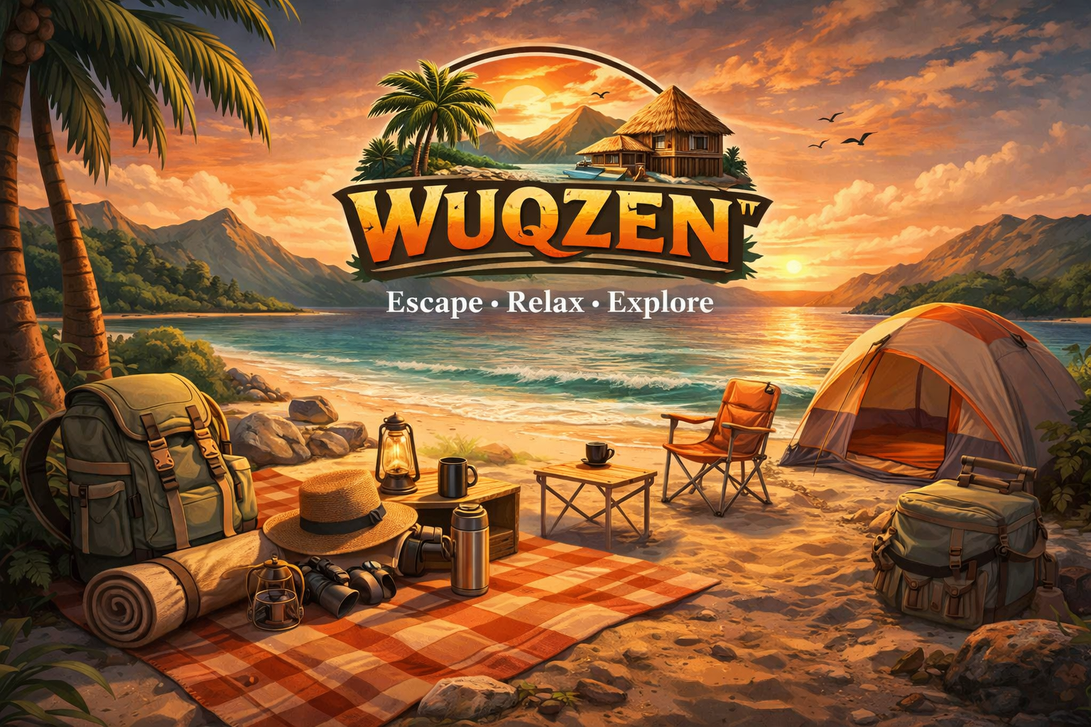WUQZENβ’ Coastal Escape Foldable Picnic Set β Beach Camping Kit, Portable Outdoor Dining Gear, Travel Leisure Essentials